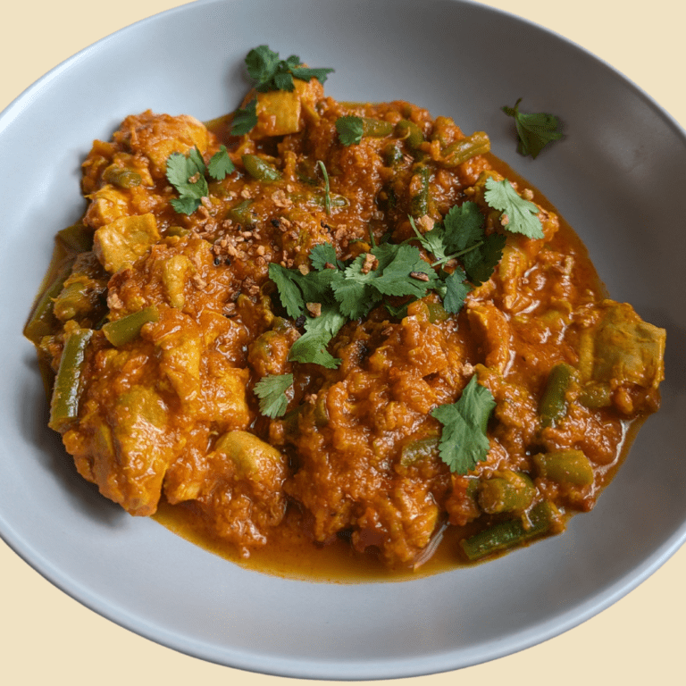 Add sambal, coconut milk & veg and simmer for 10 minutes over medium heat.